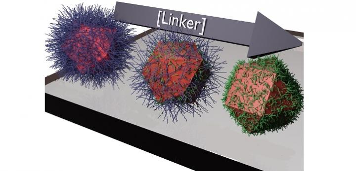 To find out, Kirmani's team used a microbalance to monitor the exchange of oleic acid for linkers during the transition. They measured the spacing between the dots by scattering X-rays from them, and they also recorded the film's changing thickness, density and optical absorption characteristics.