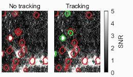 image: The video shows the results of the SUNS online technique without the "tracking" option enabled (left) and with the "tracking" option enabled (right). The green contours in the right panels were the neurons found in previous frames and appeared as active in the current frames.
