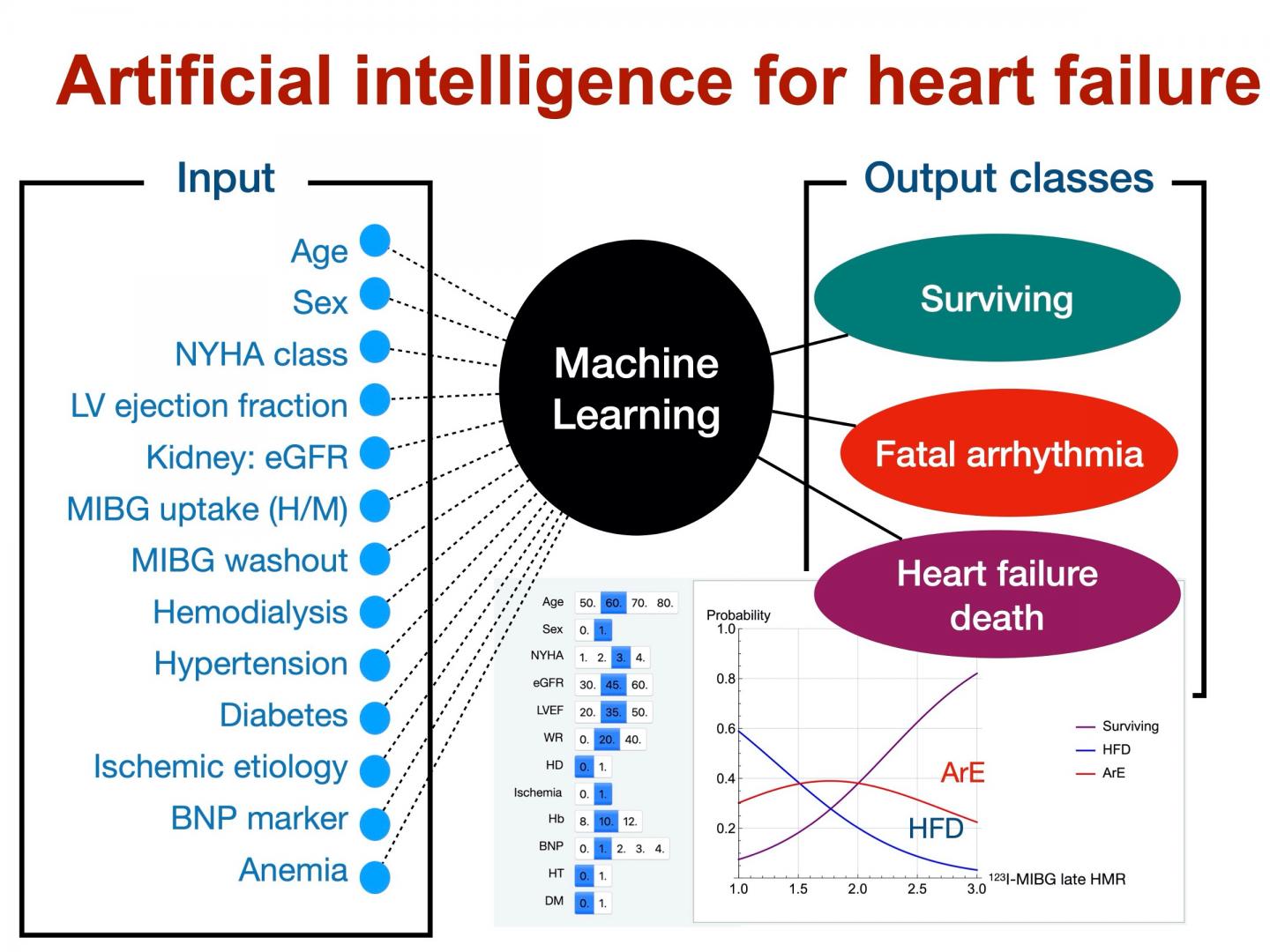 image: Machine learning uses 13 input data to predict fatal arrhythmia (sudden cardiac death), heart failure death and survival.