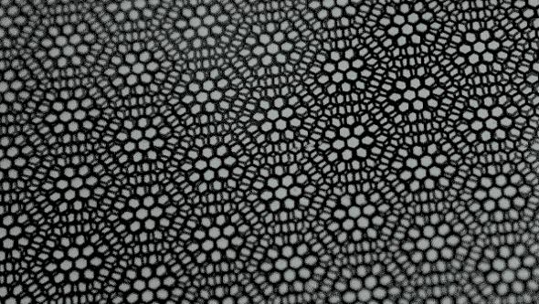 image: Two layers of graphene superimposed at an angle of 1.1 degrees (the so-called 'magic angle') produce a moiré effect
