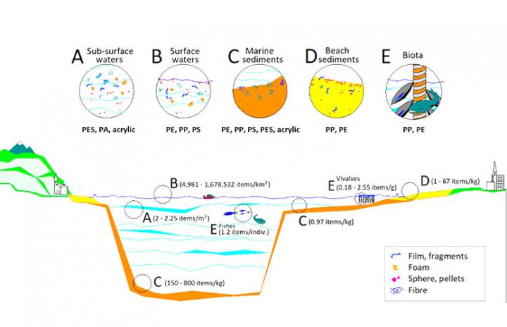 image: Marine sectors and principal polymeric materials of the microplastics in the Bay of Biscay