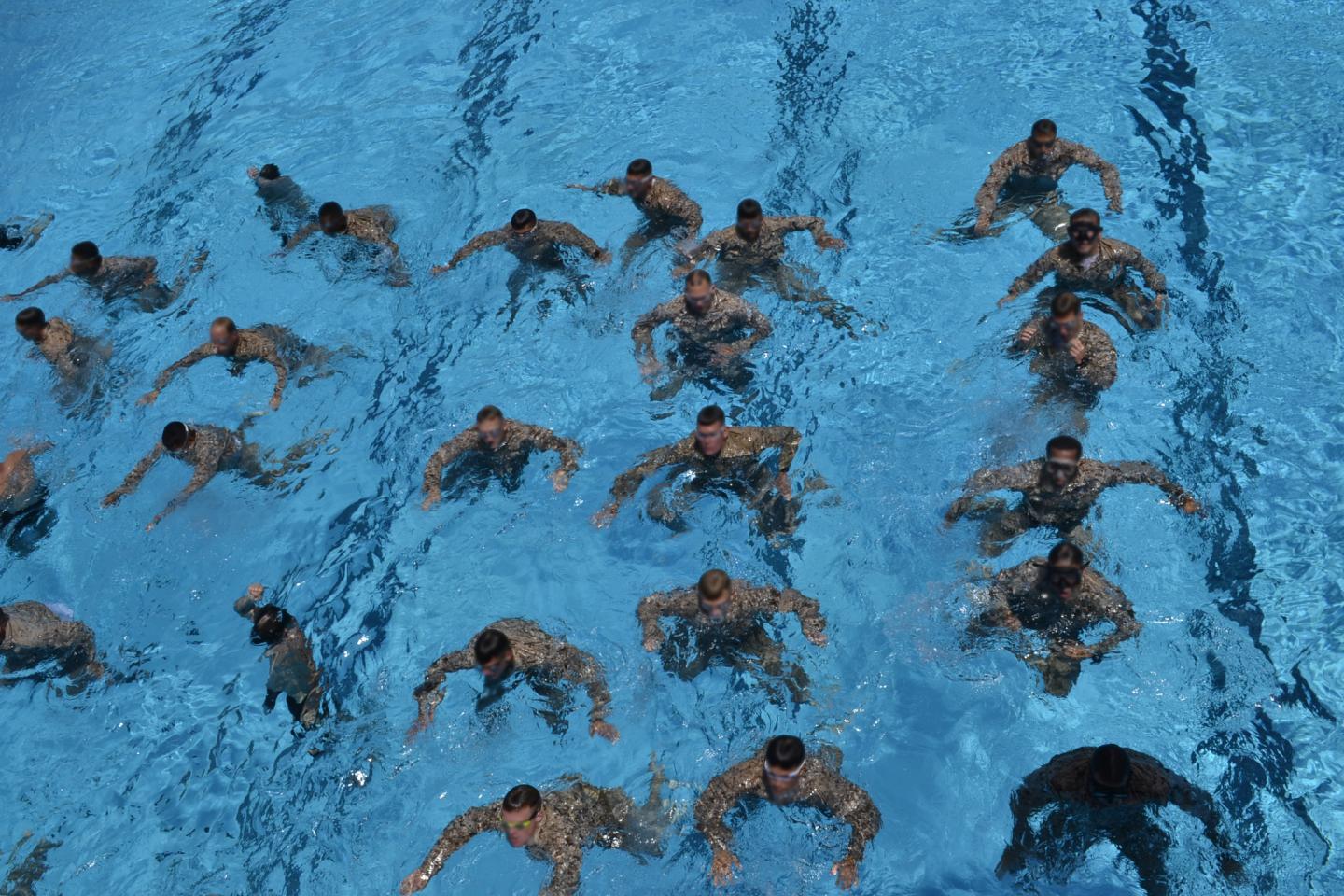 image: Marine trainees undergo an aquatic training exercise.