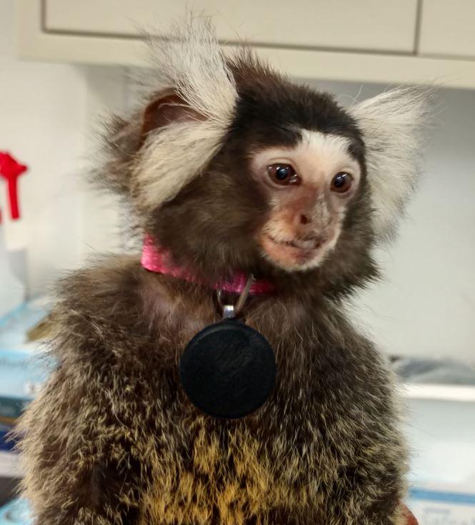 image: Marmosets in the study were monitored with Fitbit-like devices.