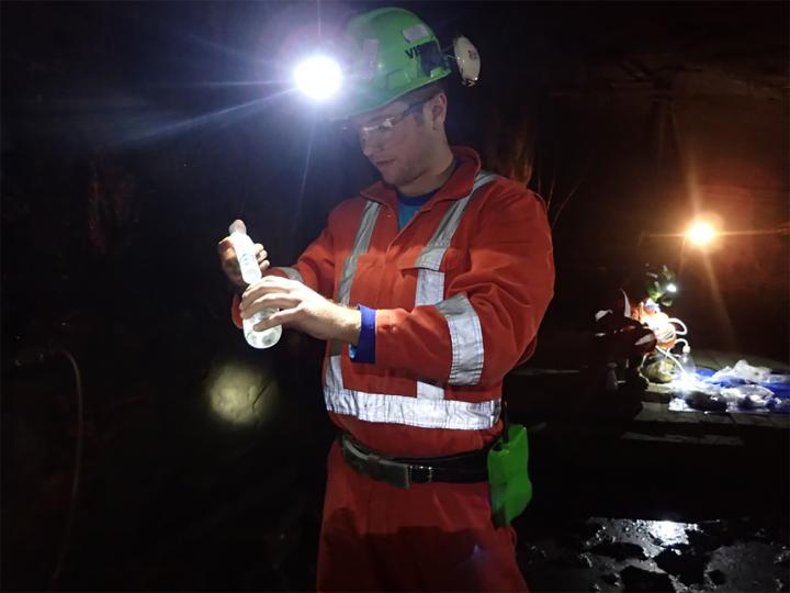 image: Jesse Tarnas, a Brown University graduate and postdoctoral research at NASA's Jet Propulsion Laboratory, work in Canada's Kidd Creek Mine. Water in the depths of the mine that hasn't seen the light of day in a billion years was shown to harbor rock-eating life. New research shows that the subsurface of Mars has the right ingredients to harbor similar forms of life.