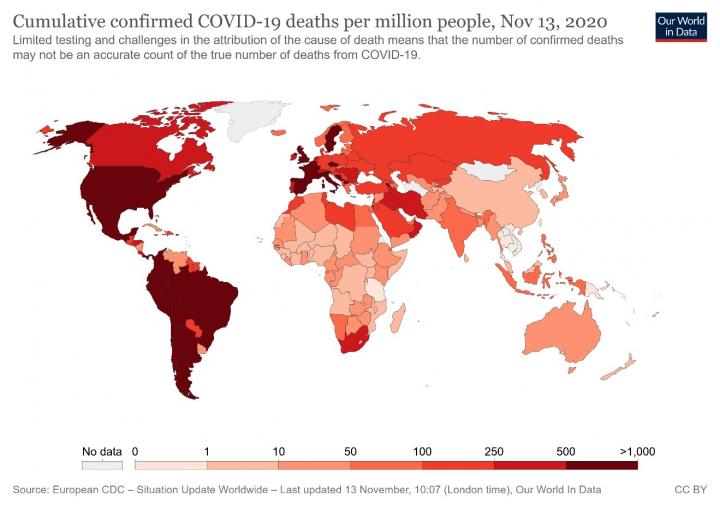 image: Figure 1 - Cumulative confirmed deaths from Covid19 infection. Credit ourworldindata.org.