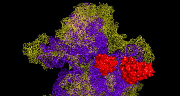 image: Proteins associated with cancer and autism (MCT-1 and DENR) on the human ribosome