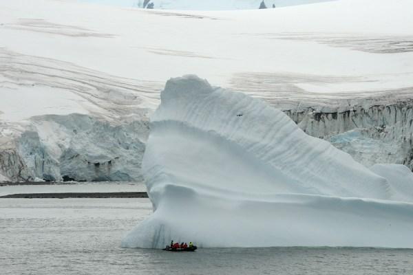 image: Sampling an iceberg during the Powell 2020 research expedition close to the "Juan Carlos I" Spanish Antarctic Base/José Abel Flores