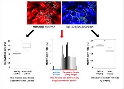 "While we found methylated microRNA in the samples from pancreatic cancer patients, it was either present in very low levels or absent in the control group," explains senior author of the study Hideshi Ishii. "Further, methylation levels in serum samples were able to distinguish early pancreatic cancer patients from healthy controls with extremely high sensitivity and specificity."
