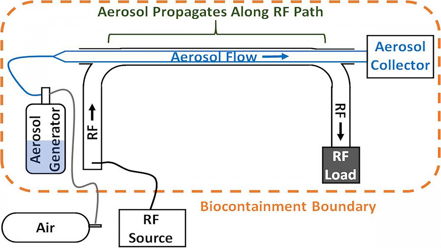 In Review of Scientific Instruments, by AIP Publishing, researchers from the Air Force Research Laboratory report development of a set of experimental tools capable of presenting electromagnetic waves to an aerosol mixture of biological media and virus with the capability to vary power, energy, and frequency of the electromagnetic exposure. The researchers seek to better characterize the threshold levels of microwave energy needed to inactivate aerosolized viral particles and, thus, reduce their ability to spread infection.