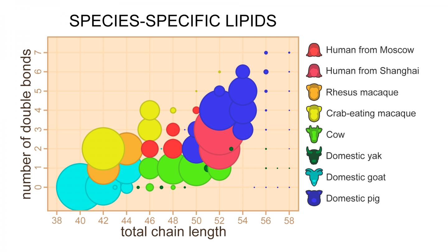 Researchers from Philipp Khaitovich's lab at Skoltech conducted mass spectrometric analysis of milk lipid samples of humans, two species of macaques, cows, pigs, goats and yaks, and made comparisons for their 472 components. The differences in the lipid composition were then compared to the known evolutionary distances between the species, and the majority of samples displayed a good match, except for pig milk. The analysis of triglycerides showed that saturated and monounsaturated fatty acids prevail in the milk of even-toed mammals, while primate milk is rich in unsaturated fatty acids. Pig milk contains a large amount of polyunsaturated fatty acids, which may be indicative of the adaptation to the short lactation period. Human milk, unlike primate milk, also contains a lot of polyunsaturated fatty acids. As both primates and humans have rather long lactation periods, scientists attribute the differences in milk composition to increased needs of the more complex human brain. Polyunsaturated fatty acids, especially omega-3 and omega-6, mostly come from food and are known to play an important role in the functioning of the nervous system.