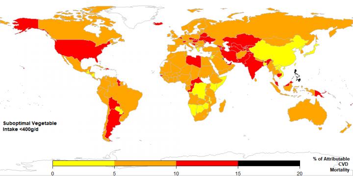 The researchers estimated average national intakes of fruit and vegetables from diet surveys and food availability data representing 113 countries (about 82 percent of the world's population), then combined this information with data on causes of death in each country and data on the cardiovascular risk associated with inadequate fruit and vegetable consumption. The work is part of the Global Dietary Database project funded by the Bill & Melinda Gates Foundation.