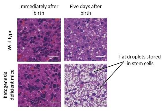 To search for answers, researchers generated ketogenesis-deficient mice that lacked the gene for HMG-CoA Synthase 2 (HMGCS2), an important enzyme ketogenesis. Their analysis showed that, in the absence of ketone bodies, the mice developed a severely fatty liver during the neonatal period.