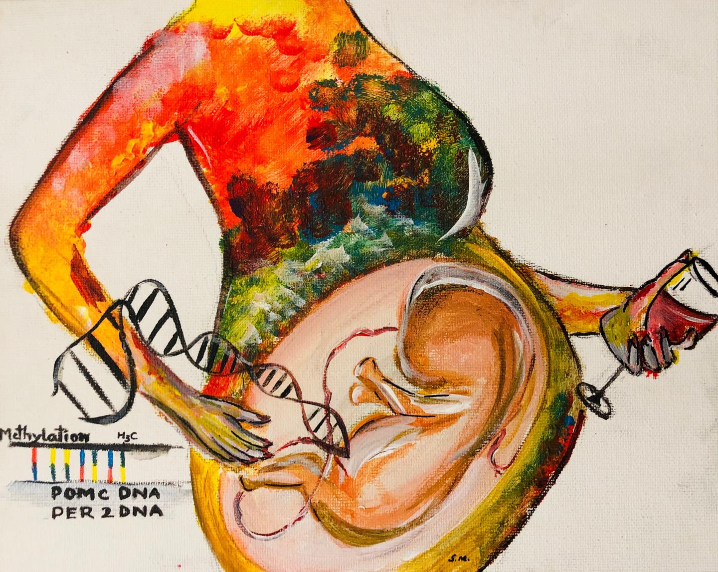 image: Researchers looked for alcohol-induced DNA changes in pregnant women and their children. They found changes to two genes -- POMC, which regulates the stress-response system, and PER2, which influences the body's biological clock -- in women who drank moderate to high levels of alcohol during pregnancy and in children who had been exposed to those levels of alcohol in the womb.