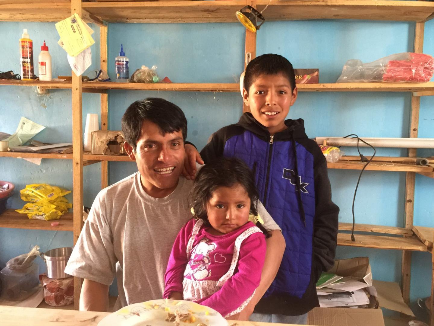 image: A village official and his children in Copa, Peru, a community that's adapting to changing water levels due to retreating glaciers.