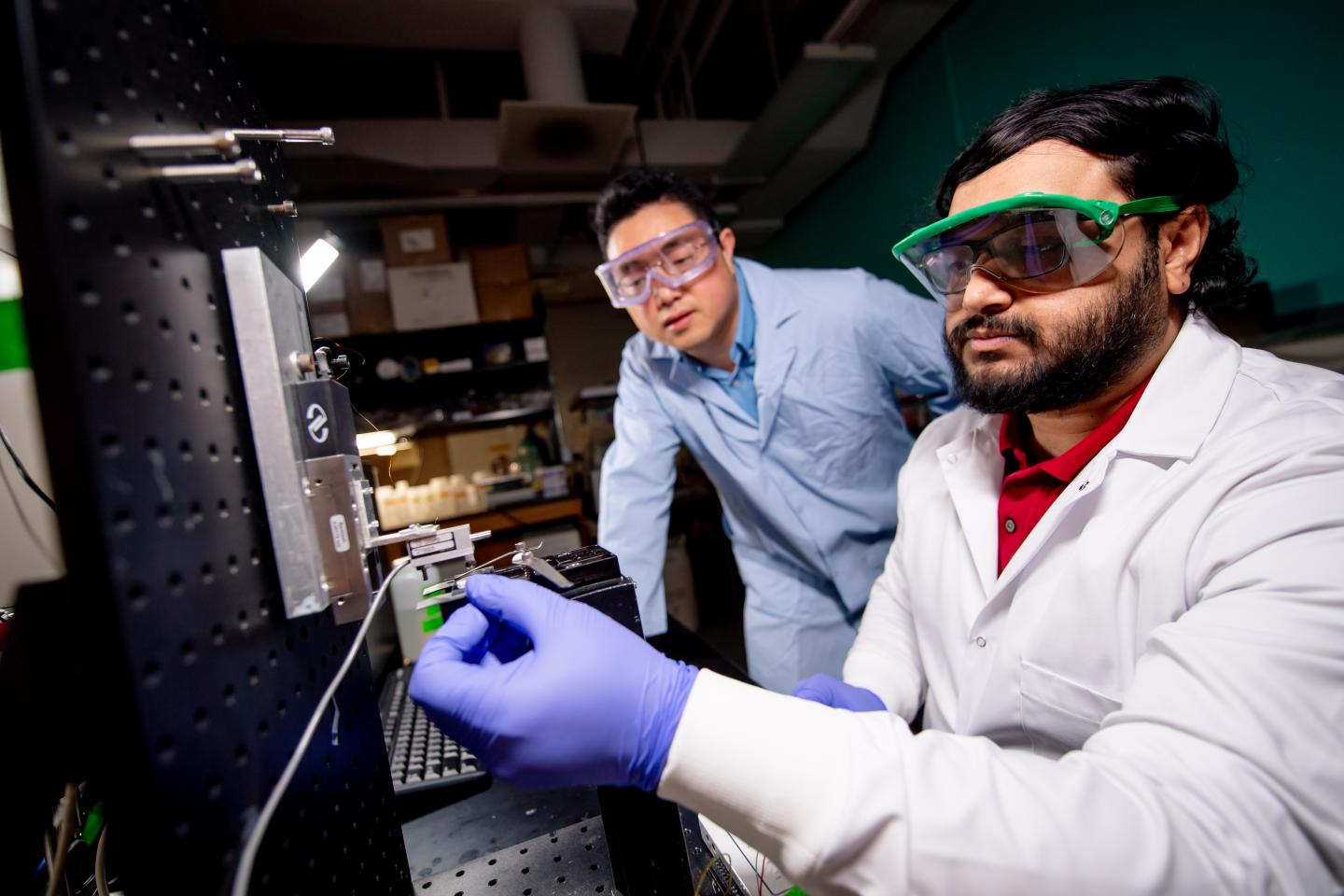 One day catechol adhesives may help attach equipment to the hulls of submarines but testing prototypes in scuba gear isn't how new tech gets created. Instead, Lee and Bhuiyan need to control a suite of variables in a small lab space. Simple as it sounds, running a current through a material and checking its stickiness is actually quite difficult to do over and over again.