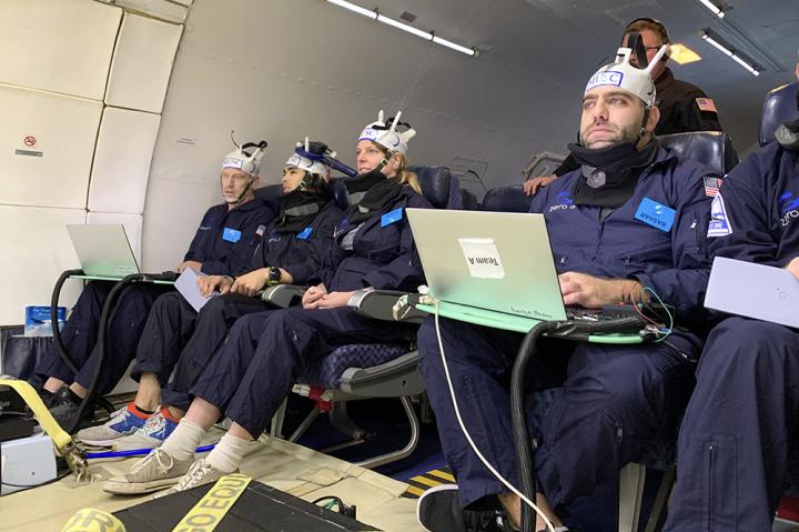 And this is where the scientists got to have a little fun. To test TMS in zero gravity, they would board a special plane operated by Zero Gravity Corporation, which offers zero gravity flights for personal adventure, media productions and research.
