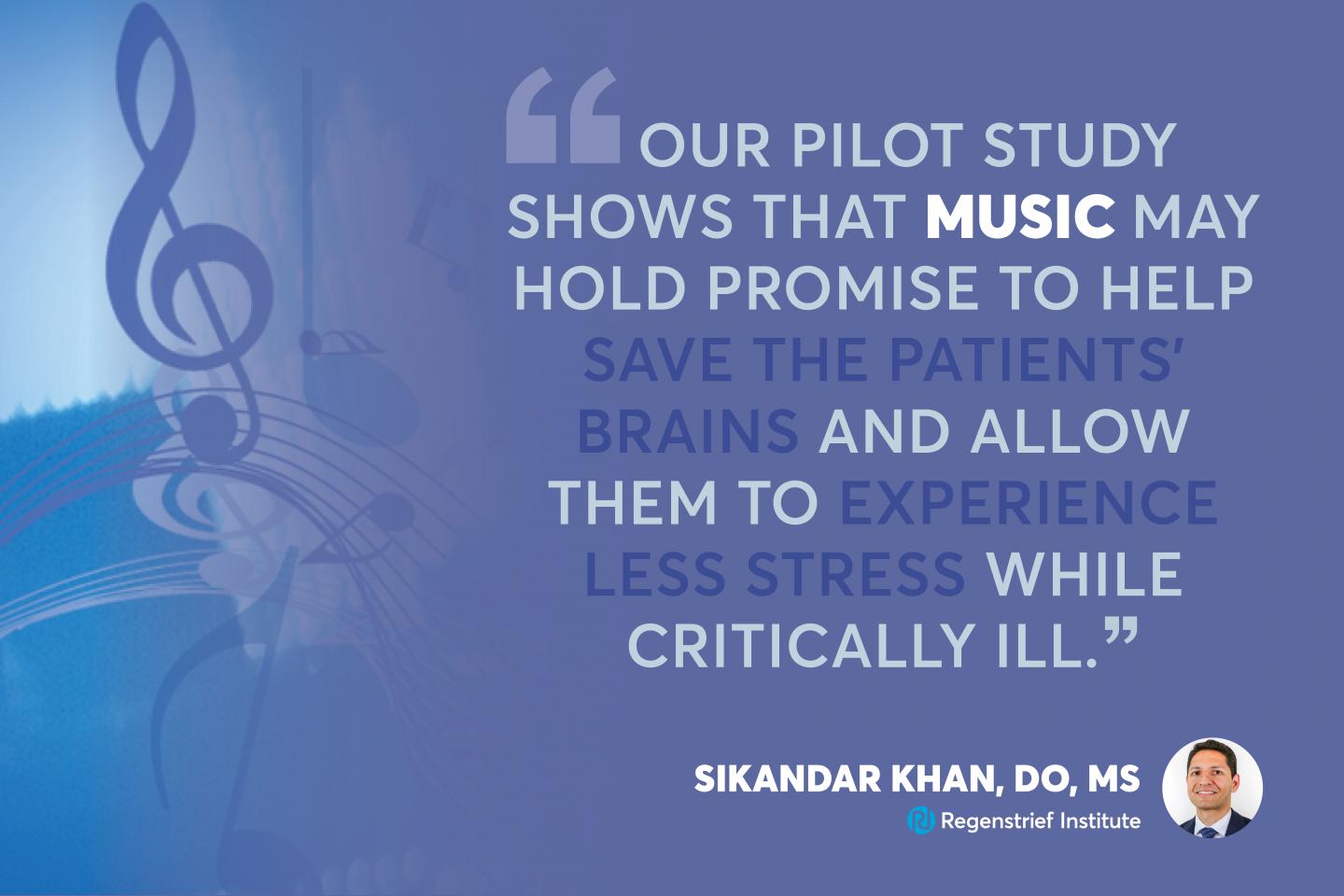 "Like kidney or heart failure, individuals can develop brain failure, but there is no treatment equivalent to dialysis or the ventilator for brain failure, a condition which can adversely affect an individual's personality and quality of life for years," said Sikandar Khan, D.O., M.S., IU School of Medicine assistant professor of medicine and Regenstrief Institute research scientist, who led the new study. "Recent studies by our group and others have shown that drugs, including commonly prescribed antipsychotics, do not treat delirium or reduce its severity, so we desperately need a non-pharmacologic treatment. Our pilot study shows that music may hold promise to help save patients' brains and allow them to experience less stress while critically ill."
