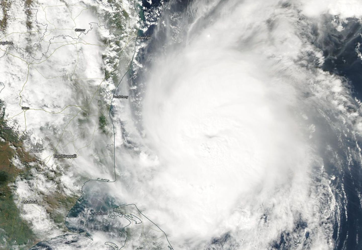 Tropical Cyclone Gaja continued to organize in the Bay of Bengal as it made its approach to southeastern India when NASA-NOAA's Suomi NPP satellite passed overhead and captured an image. The image revealed that Gaja had developed a cloud-filled eye.