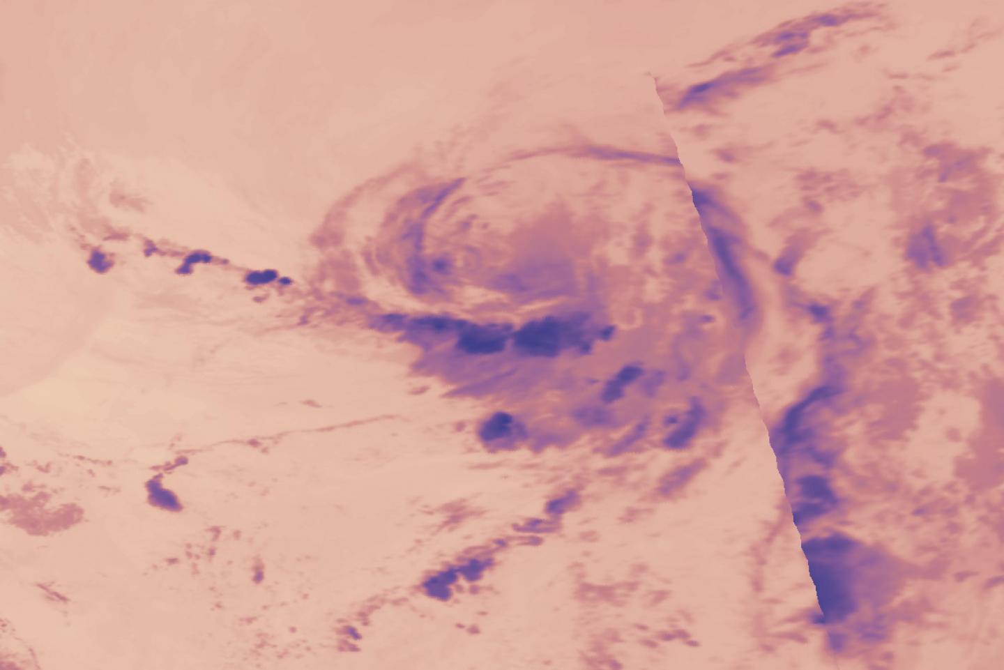 image: NASA's Terra satellite provided an infrared image of Post-Tropical Cyclones Dolly during the early morning hours of June 24, 2020 that showed the bulk of its storms (dark blue) were south of its center.