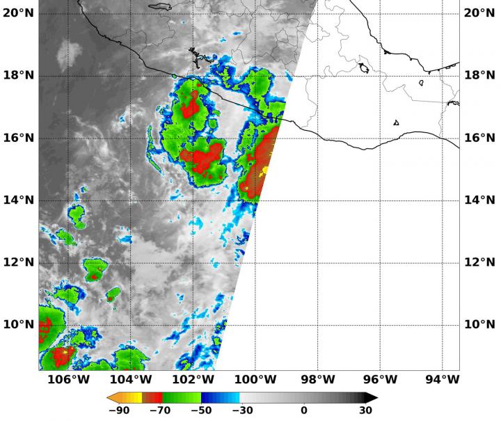 Those coldest temperatures appeared in fragmented storms that were located northwest, southwest and southeast of the storm's center. All of those areas were over the Eastern Pacific Ocean and just offshore of mainland Mexico. Storms with cloud top temperatures that cold have the capability to produce heavy rainfall.