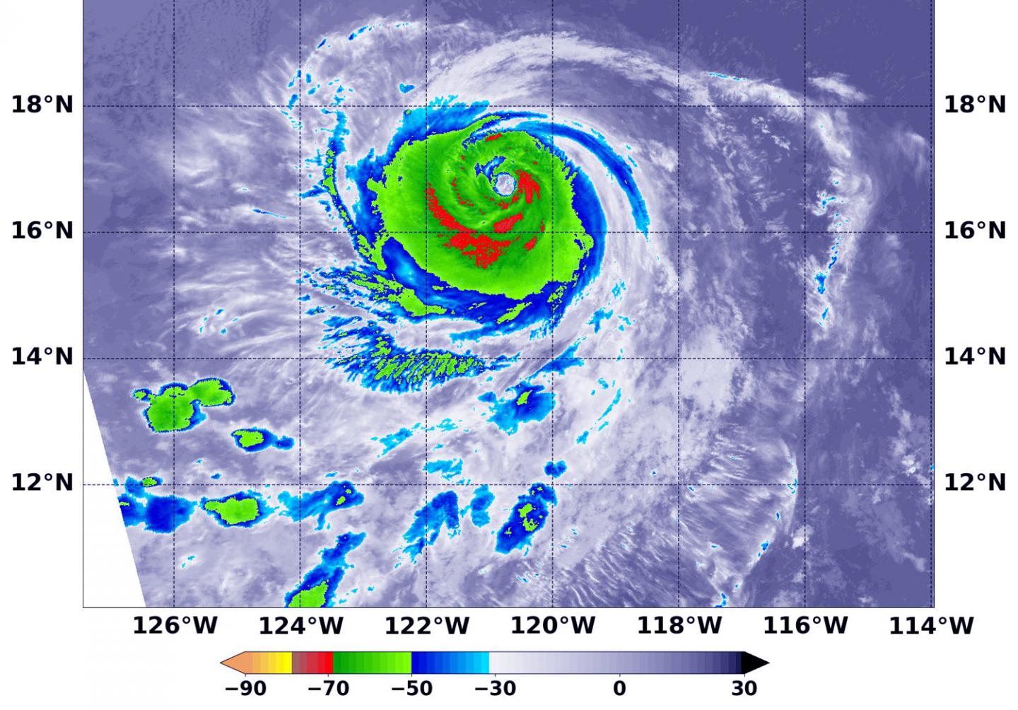 Maximum sustained winds have decreased to near 110 mph (175 kph) with higher gusts. The NHC said additional slow weakening is expected during the next few days.