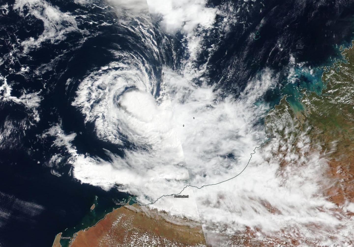 image: NASA-NOAA's Suomi NPP satellite passed over the Southern Indian Ocean and captured a visible image of newly formed Tropical Storm 21S off the coast of Western Australia.