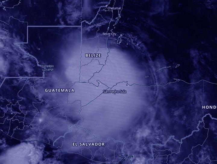 NASA-NOAA's Suomi NPP satellite provided a nighttime look at Hurricane Nana just after it began making landfall in Belize.