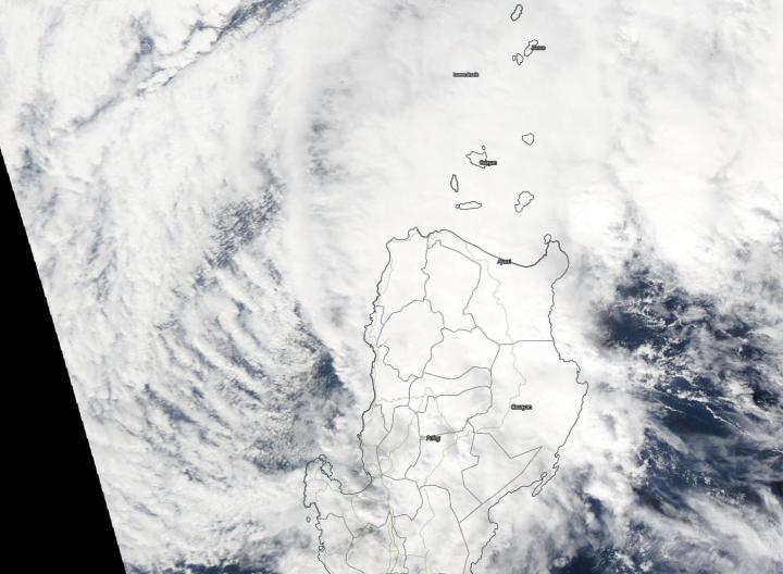 image: On Nov. 19, 2019, the MODIS instrument that flies aboard NASA's Terra satellite provided a visible image of Typhoon Kalmaegi near the Luzon Strait and northern Philippines.
