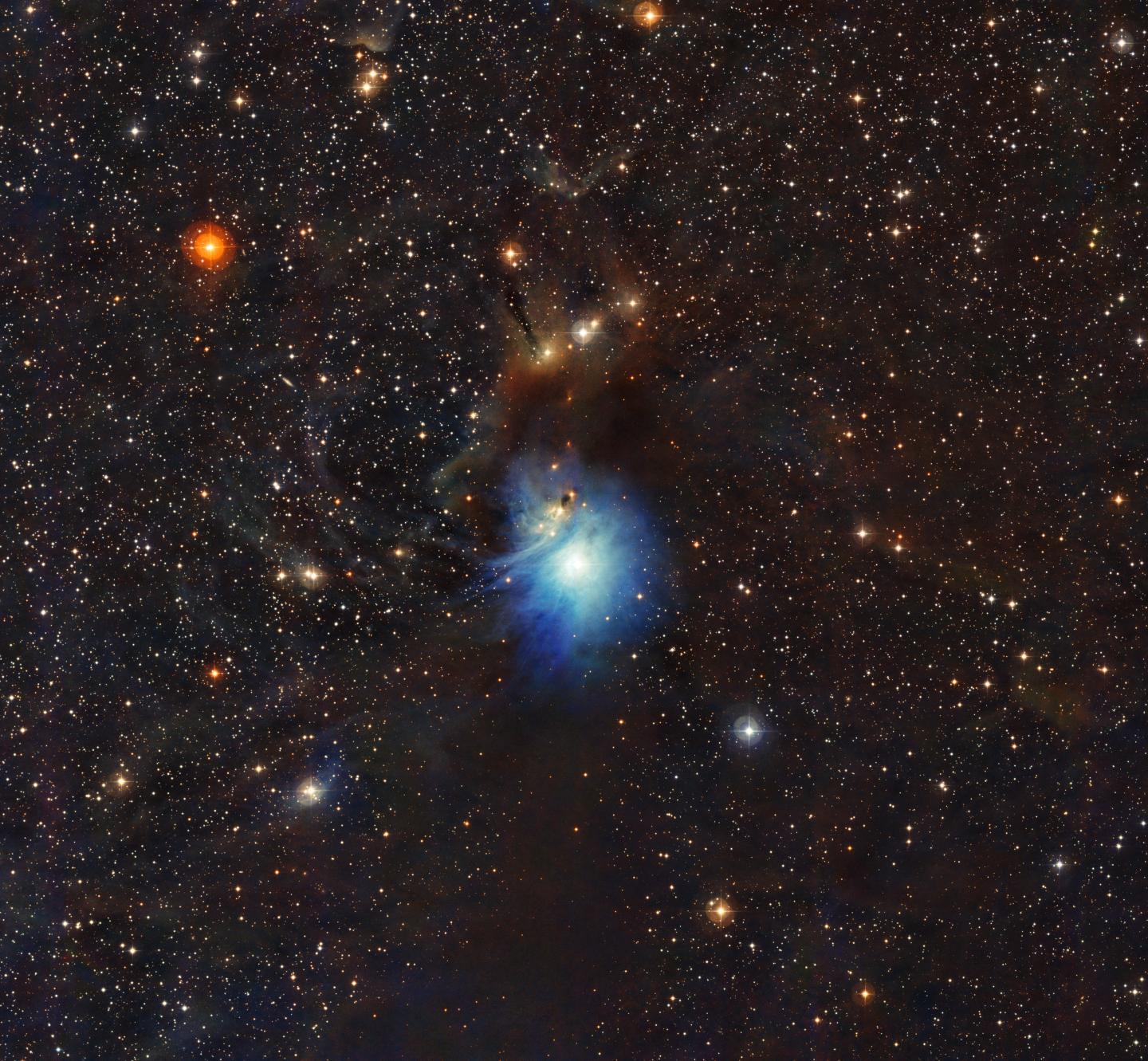 image: Blue light from a newborn star lights up the reflection nebula IC 2631. This nebula is part of the Chamaeleon star-forming region, which Webb will study to learn more about the formation of water and other cosmic ices.