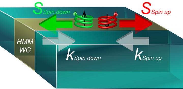 Their research not only addresses the need for an all-electric experimental design scheme for near-field photonics, but also contributes fundamentally valuable symmetry-based excitation principles. Using a Huygens metasource, the researchers were able to observe the unidirectional excitation of hyperbolic bulk modes in a planar HMM. They found that unidirectional excitation in free space is the same as in the vertical direction, but opposite to that in the horizontal direction. These different propagation characteristics in horizontal and vertical directions are unique to the hyperbolic modes. In addition, the researchers used spin metasources to study the directional propagation of light in a planar hyperbolic waveguide. They found that, for the clockwise-rotating spin metasource, only the guided mode propagating from right to left is excited. And for the counterclockwise-rotating source, only the guided mode propagating from left to right is excited.