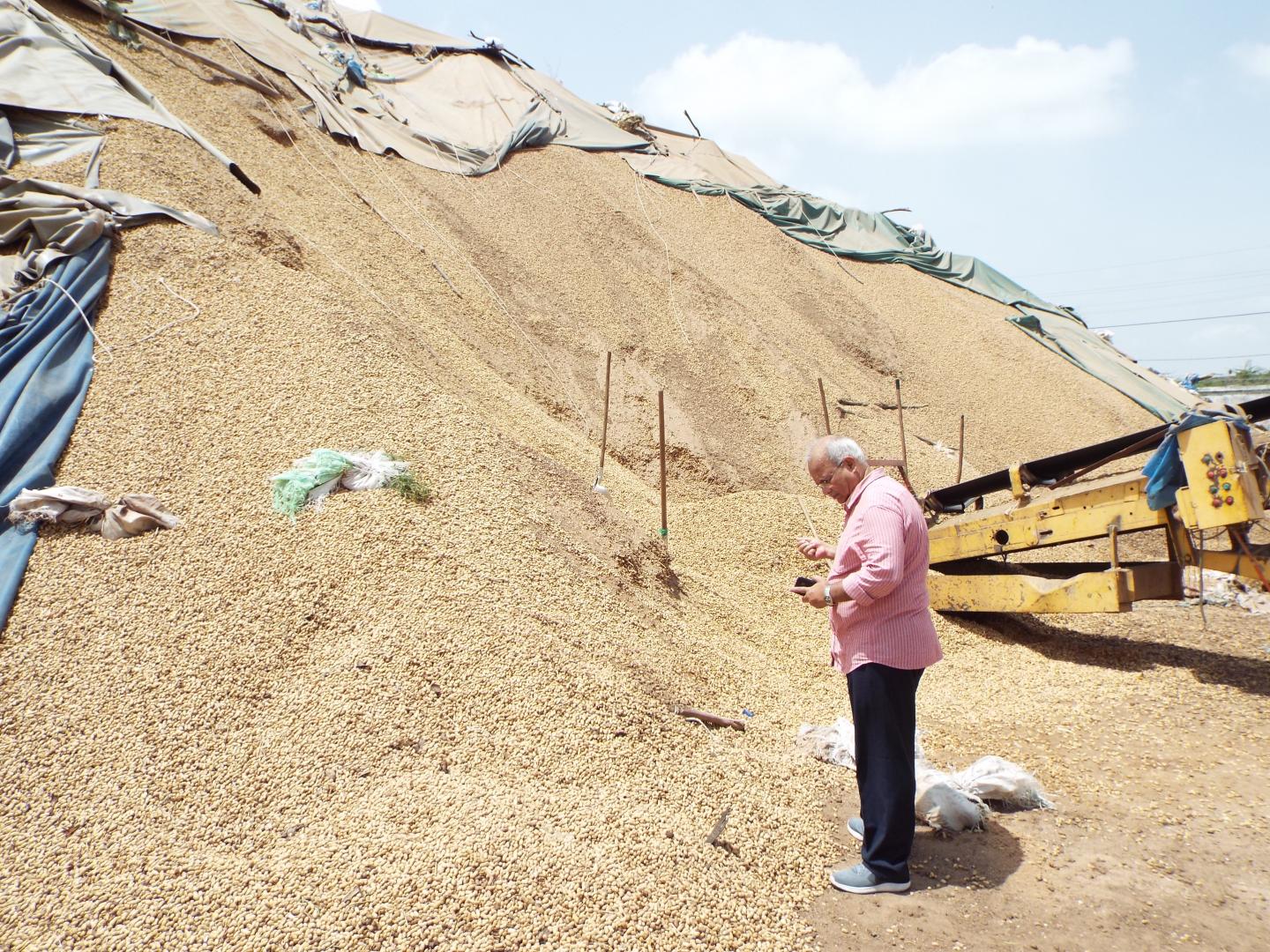 image: Ranajit Bandyopadhyay? in front of groundnut pile.
