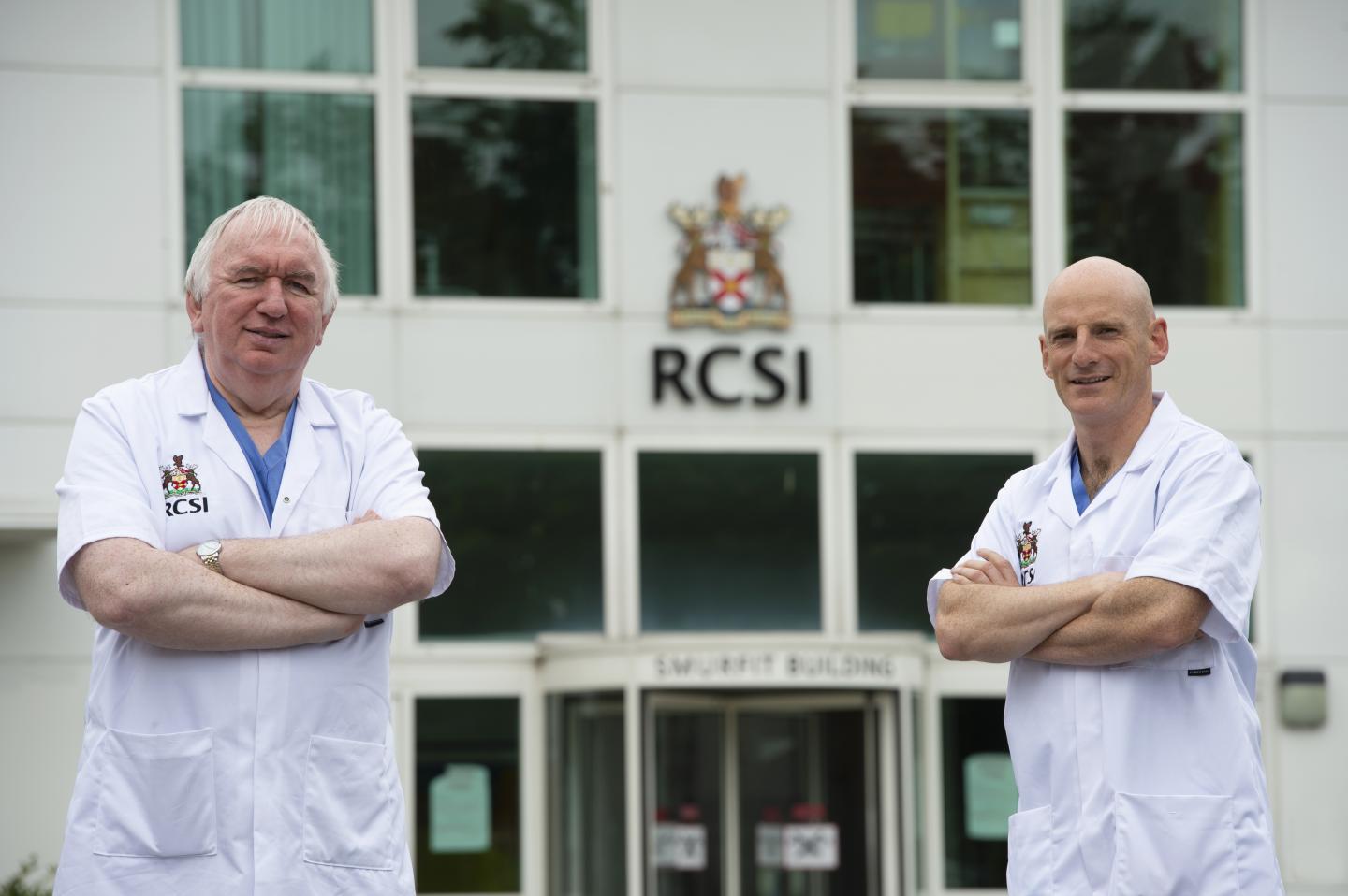 image: Professor Gerry McElvaney (left), the study's senior author and a consultant in Beaumont Hospital, and Professor Ger Curley (right) stand in front of the RCSI Education and Research Centre in Beaumont Hospital, Dublin.