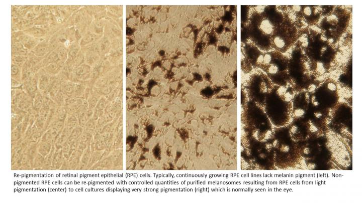 In the new model, non-pigmented RPE cells can be re-pigmented by feeding them with melanin pigment.