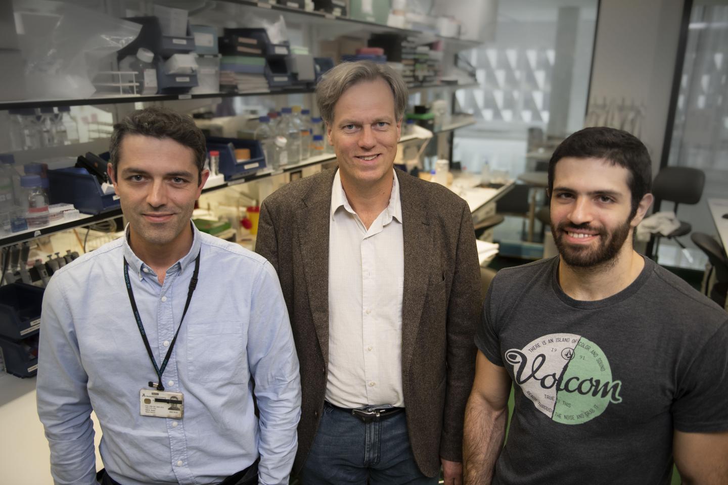 image: Vasco Sousa, Per Svenningsson and Ioannis Mantas, researchers at the Department of Clinical Neuroscience, Karolinska Institutet, Sweden.