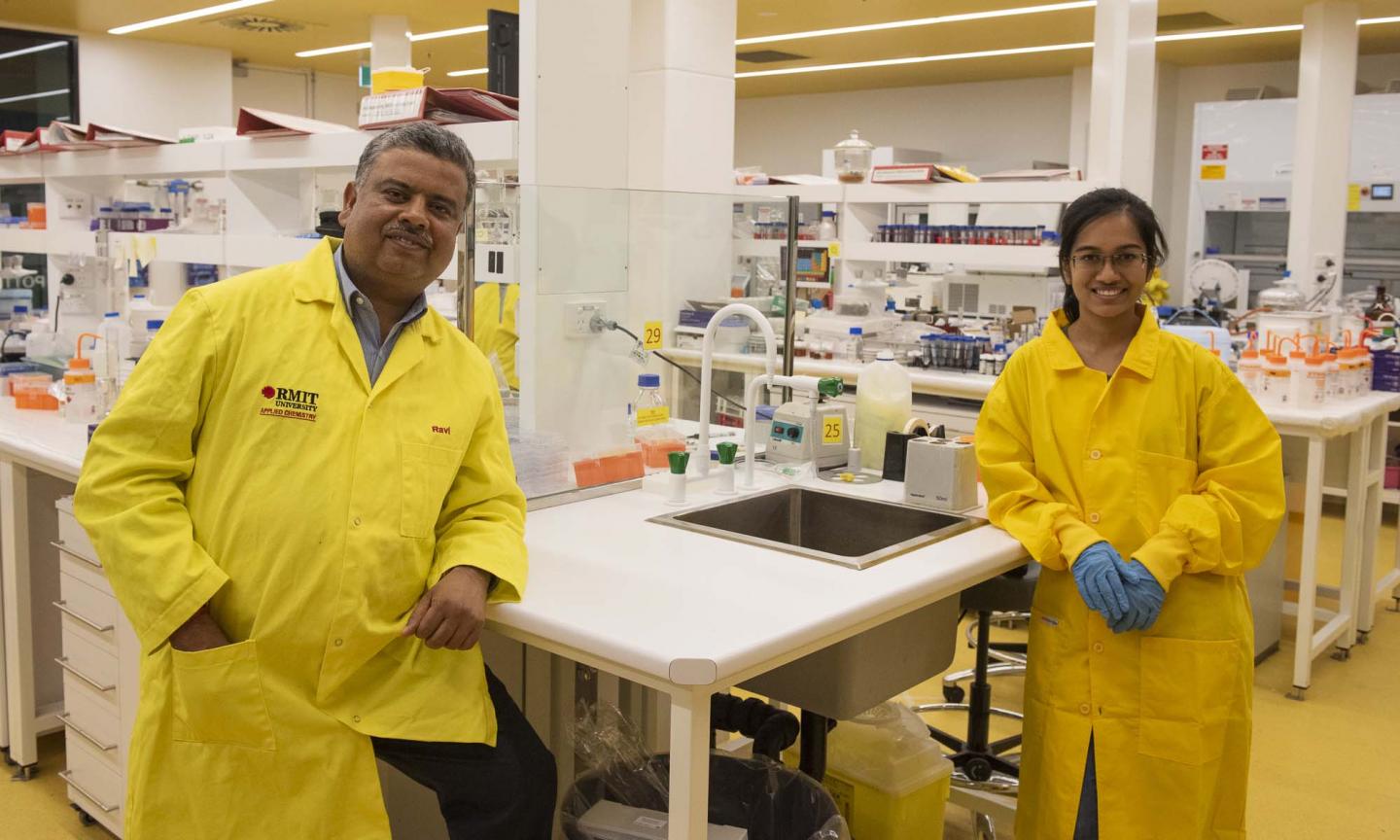 image: L-R: Associate Professor Ravi Shukla and PhD researcher Arpita Poddar in their lab.