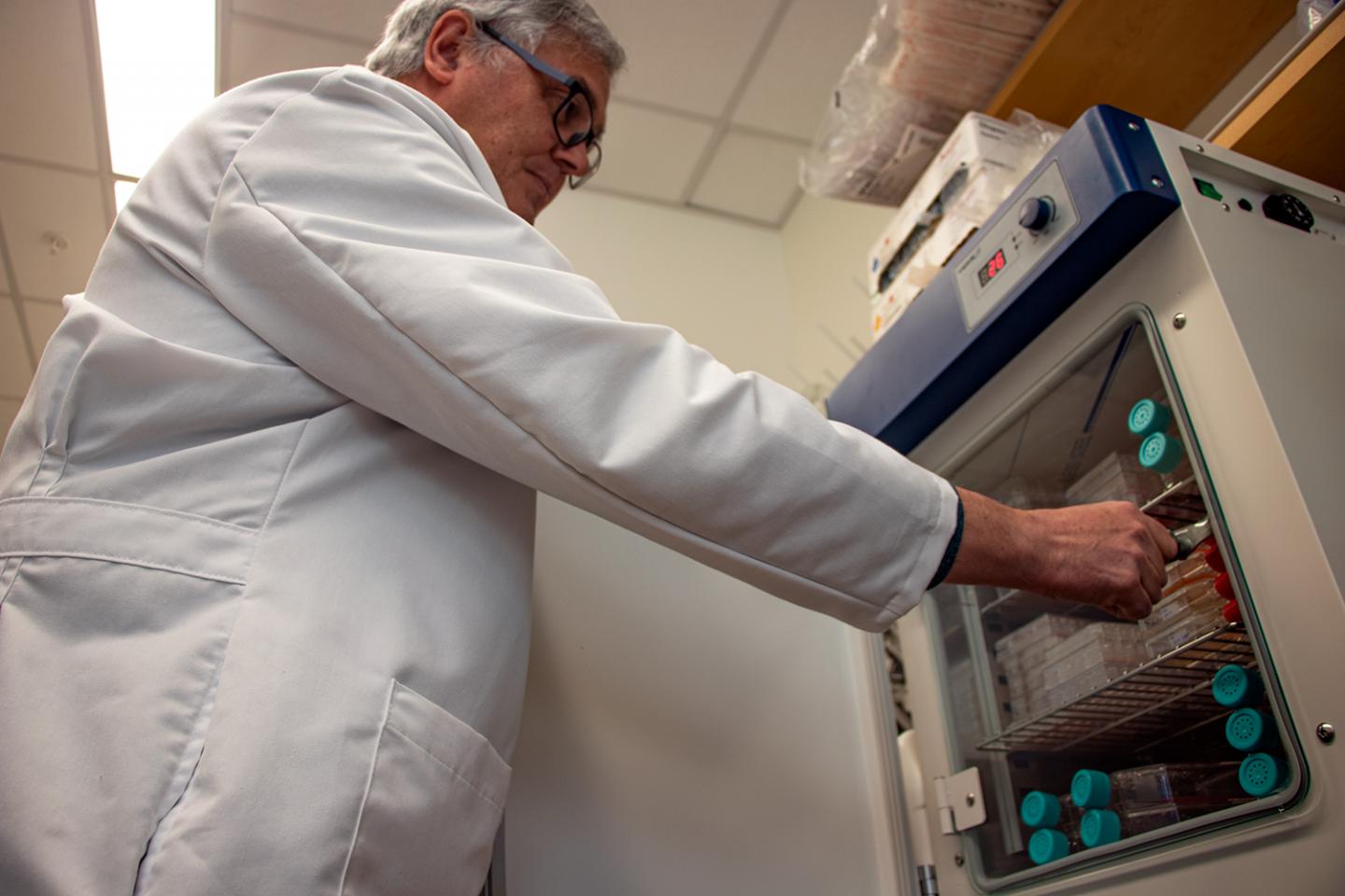 image: Senior Research Scientist José Fernández Robledo works in his laboratory at Bigelow Laboratory for Ocean Sciences. Fernández Robledo is one of the lead authors on a paper detailing more than 200 new genetic techniques for using marine microbes to investigate a host of questions in biology.