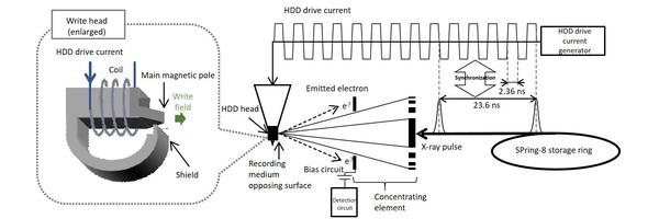 Using synchrotron radiation at SPring-8 - a large-scale synchrotron radiation facility - Tohoku University, Toshiba Corporation, and the Japan Synchrotron Radiation Research Institute (JASRI) have successfully imaged the magnetization dynamics of a hard disk drive (HDD) write head for the first time, with a precision of one ten-billionth of a second. The method makes possible precise analysis of write head operations, accelerating the development of the next-generation write heads and further increasing HDD capacity.