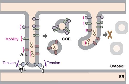 These findings suggest that ATL-mediated membrane tethering plays a critical role in maintaining the necessary mobility of ER contents to allow efficient packaging of cargo proteins into COPII vesicles. It has been shown that membrane tension affects mobility of membrane components. The activity of ATL, particularly in membrane tethering, may contribute to regulating membrane tension in the ER.