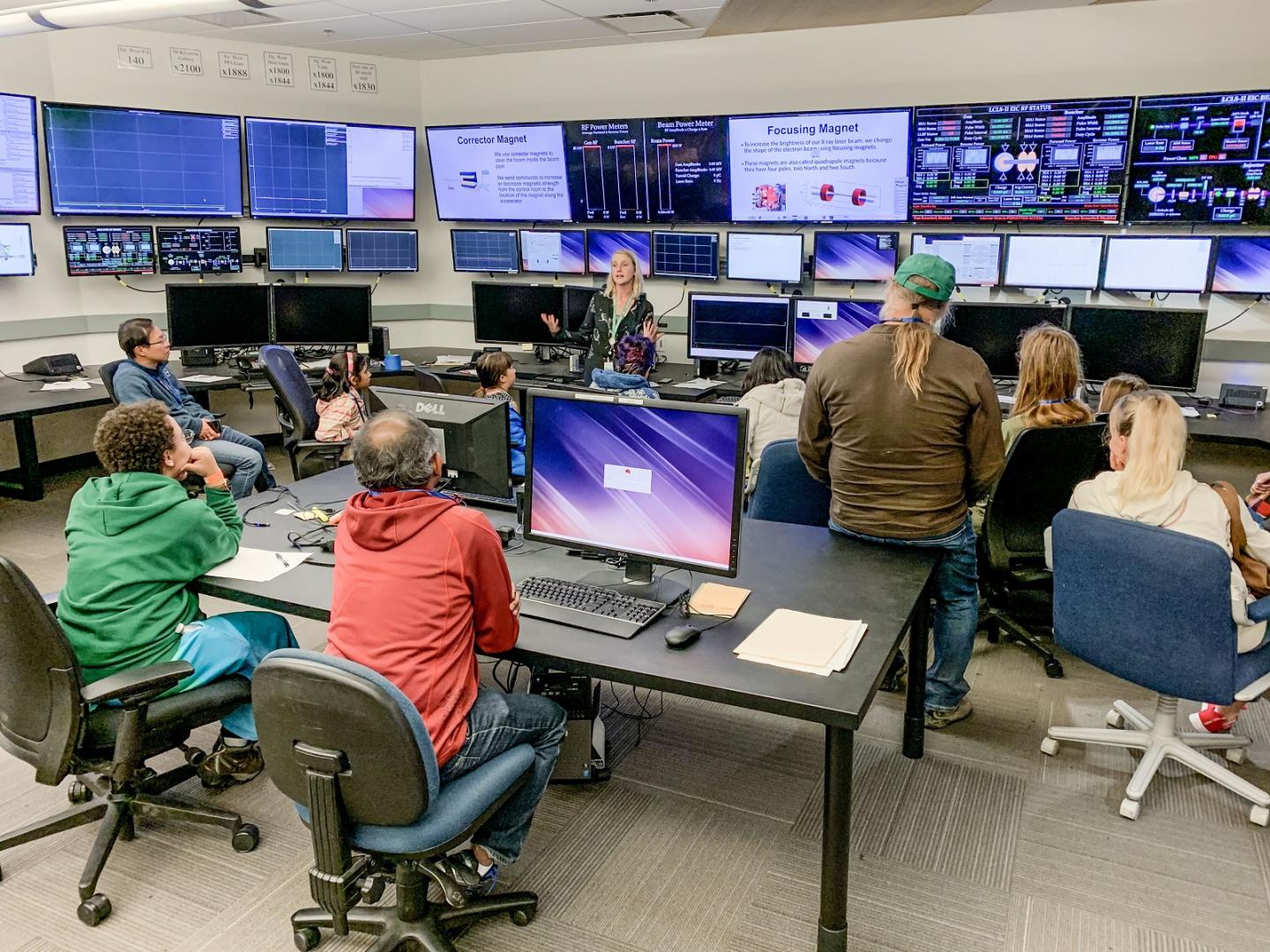 image: Accelerator operator Jane Shtalenkova gives a tour of the Accelerator Control Room during SLAC's 2019 Community Day.
