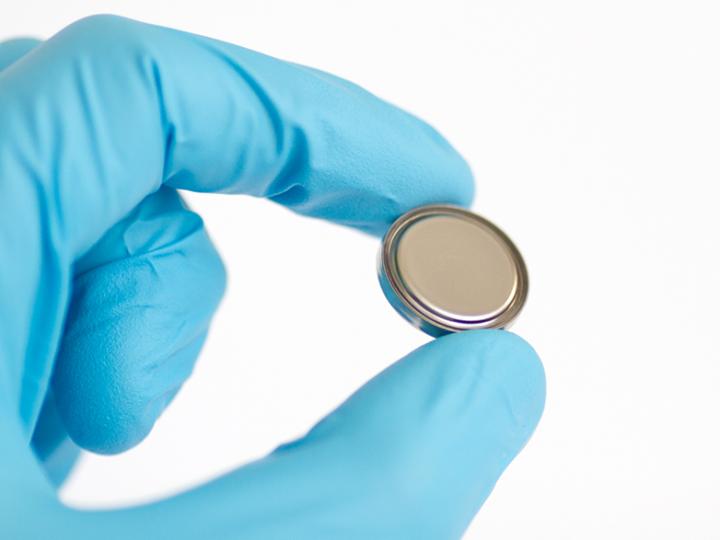image: The researchers produced aluminum button cells in the laboratory. The battery case is made of stainless steel coated with titanium nitride on the inside to make it corrosion resistant.