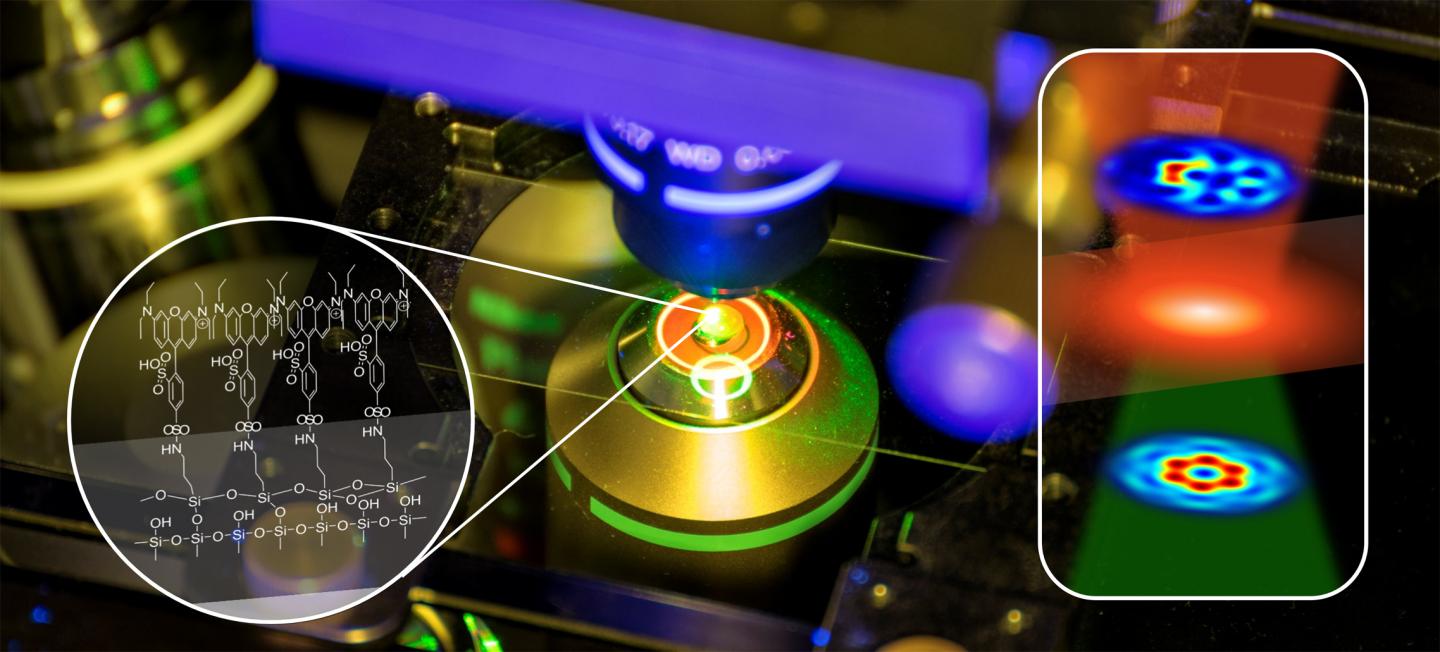 A team around physicist Prof. Dr. Cornelia Denz of the Institute of Applied Physics and chemist Prof. Dr. Bart Jan Ravoo of the Center for Soft Nanoscience at the University of Münster (Germany) successfully developed a nano-tomographic technique which is able to detect the typically invisible properties of nano-structured fields in the focus of a lens - without requiring any complex analysis algorithms or data post-processing. For this purpose, the team combined their knowledge in the field of nano-optics and organic chemistry to realize an approach based on a monolayer of organic molecules. This monolayer is placed in the focused light field and replies to this illumination by fluorescence, embedding all information about the invisible properties.
