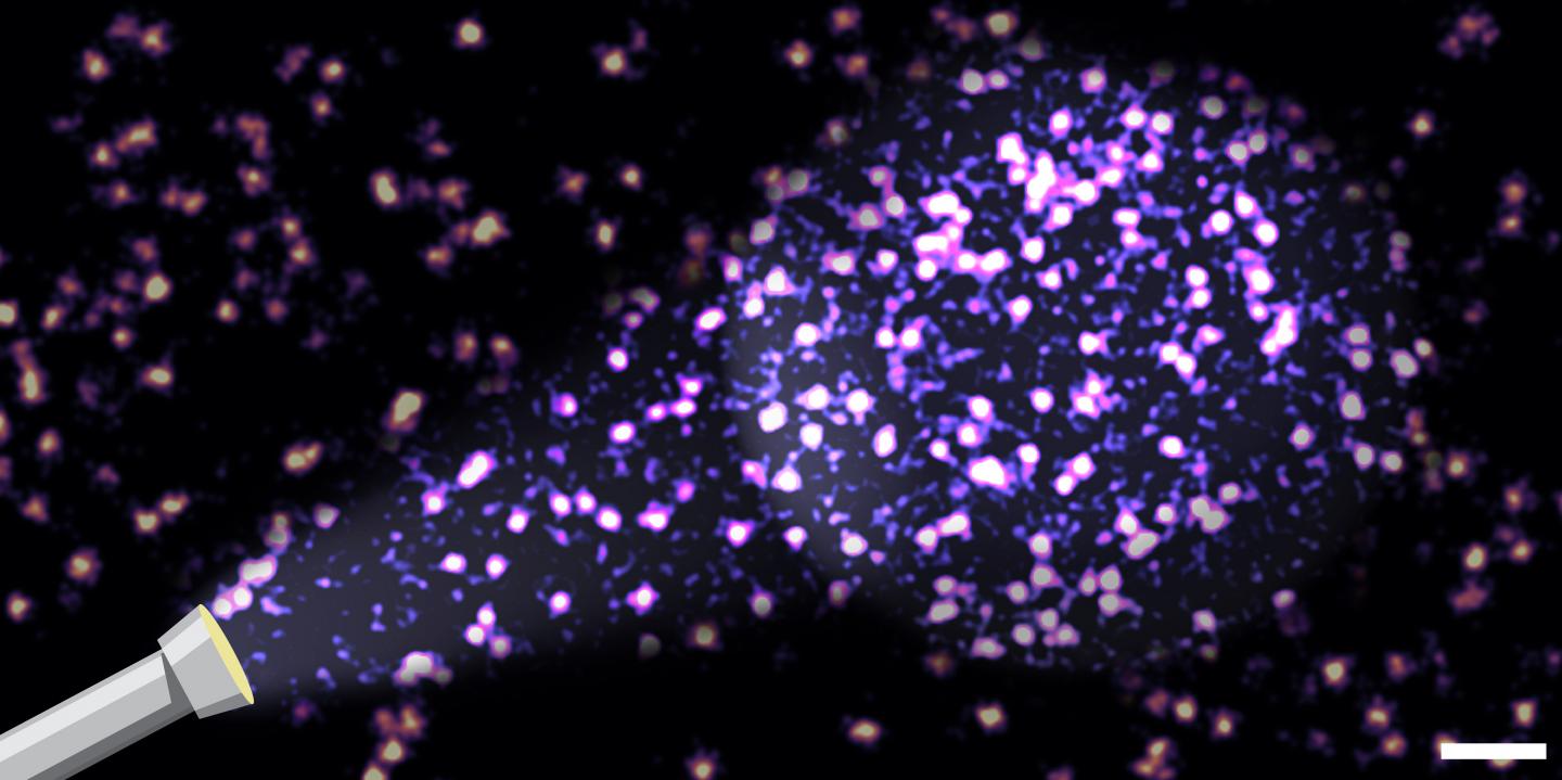 image: The image shows localization clouds of individual adhesion proteins in cells. Many proteins remained undetectable when using conventional analytical methods. By using the new analytical method actual molecular parameters can be determined. Scale bar: 100 nm.