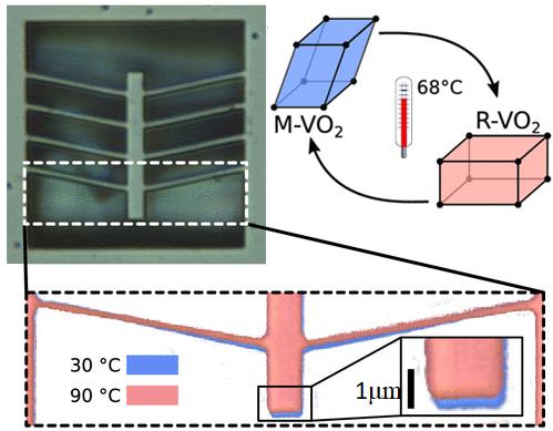 "At 68°C, vanadium oxide undergoes a sharp monoclinic to rutile phase transition that's useful in microscale technologies," explains co-author Teruo Kanki. "We used a chevron-type (sawtooth) device geometry to amplify in-plane bending of the crystal, and open up new applications."