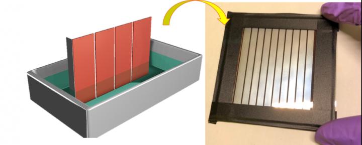 Through a simple dipping method, the team was able to deposit a uniform, high-quality perovskite crystalline thin film covering a large active area in two mini-modules, one of about 16 square centimeters and the other nearly 37 square centimeters. Fabricating uniform thin film across the entire photovoltaic module's area is essential to device performance.