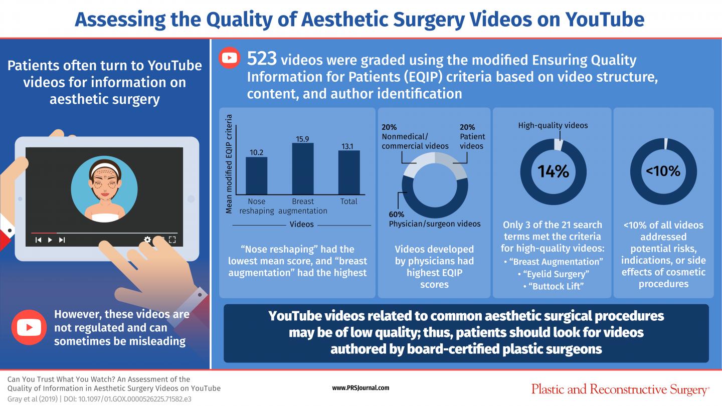 However, due to a variety of factors, such as confusing terminology, inaccurate information and unreliable sources, YouTube and social media videos in general aren't necessarily the most reliable source of information, concludes a study in the February issue of Plastic and Reconstructive Surgery®, the official medical journal of the American Society of Plastic Surgeons (ASPS).