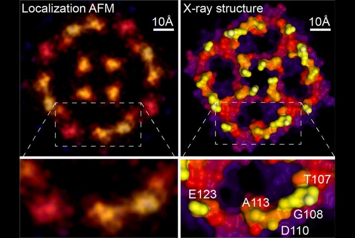 Besides allowing researchers to study biological molecules under physiologically relevant conditions, the new method has other advantages. For example, X-ray crystallography and cryo-electron microscopy rely on averaging data from large numbers of molecules, but AFM can generate images of single molecules. "Instead of having observations of hundreds of molecules, we observe one molecule a hundred times and calculate a high-resolution map," said Dr. Scheuring.