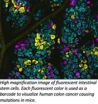 Using an innovative modeling system in mice, the researchers visually tagged colon cancer mutations by causing stem cells to glow. Mutations found in colon cancer were then visualized in the animals, illuminating a sort of tournament-to-the-death underway in the intestine in which one or another mutation prevailed over the others to become the driving force of a malignancy.