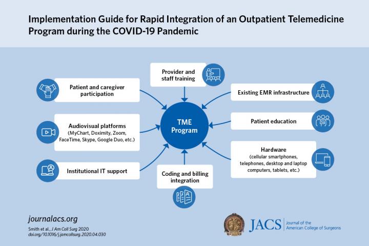 CHICAGO (May 1, 2020): Stay-at-home orders caught many medical practices and health care systems off guard, leaving them ill-equipped to rapidly adopt an efficient telemedicine platform so they could keep providing time-sensitive care to non-COVID-19 patients. To help organizations rapidly introduce telemedicine as an alternative option, a urology group in North Carolina developed a guide that enabled them to convert all in-person visits to telemedicine in three days. They report their experience in an "article in press" appearing on the Journal of the American College of Surgeons website ahead of print.