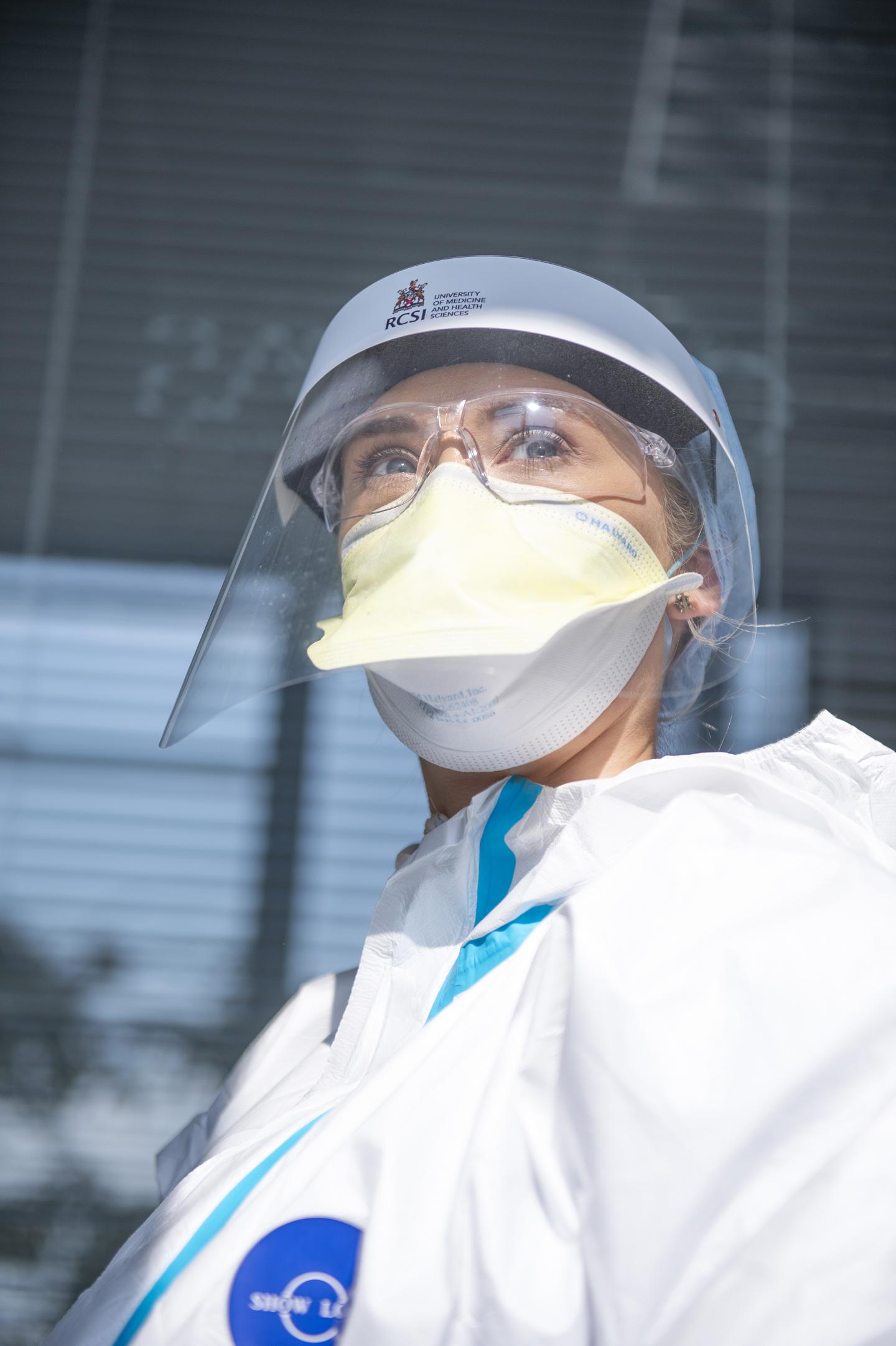 image: Pictured is Natalie McEvoy, Clinical Research Nurse in Anaesthesia and Critical Care at RCSI, wearing her personal protective equipment. A study from RCSI has found that a new 'care bundle' can reduce the incidence of facial pressure injuries in frontline COVID-19 healthcare workers caused by the prolonged wearing of Personal Protective Equipment.