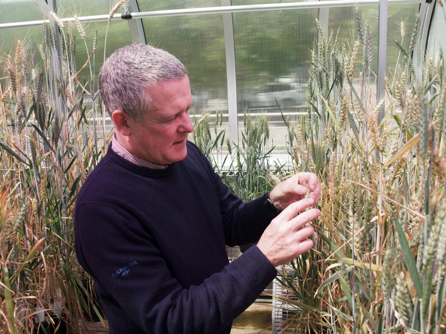 image: Associate Professor Ken Chalmers, University of Adelaide, inspecting grain grown in glasshouse trials